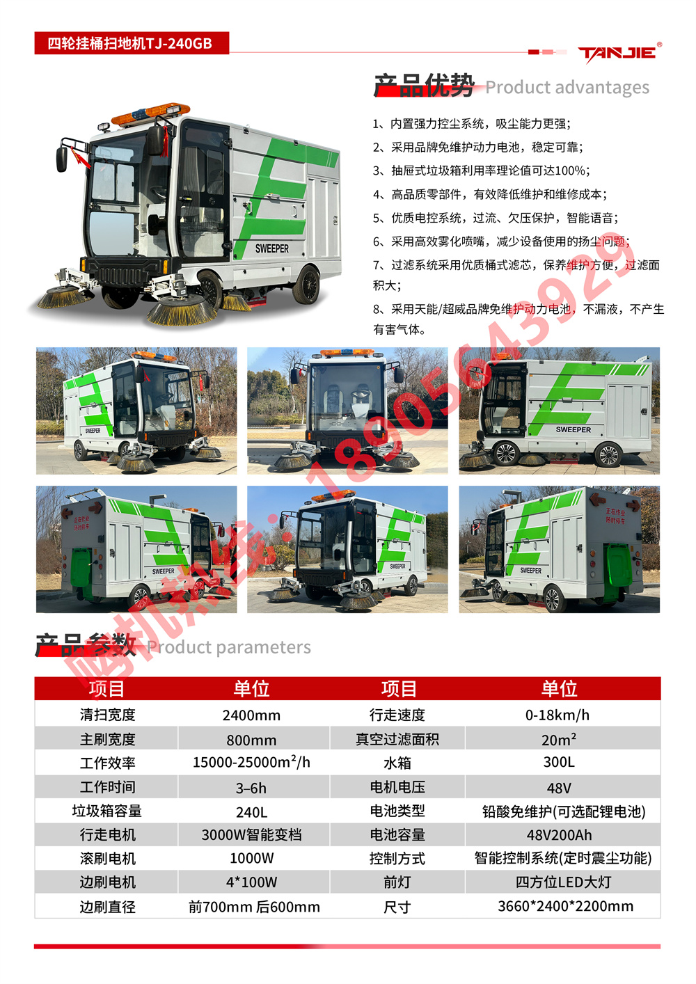 房山坦洁四轮挂桶扫地车TJ-240GT