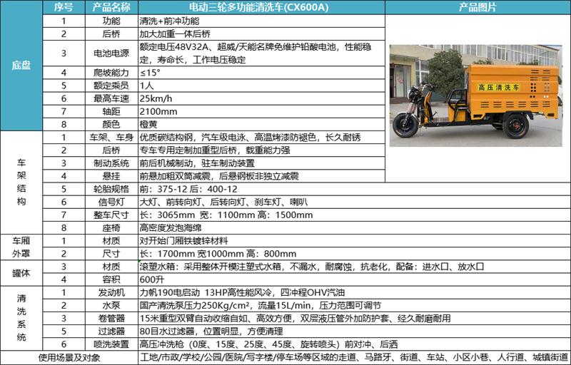 房山电动三轮高压冲洗车CX600