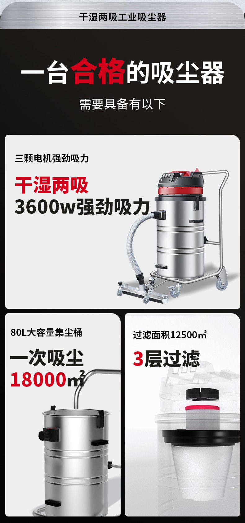 房山坦洁380V双桶不锈钢工业吸尘器X7系列