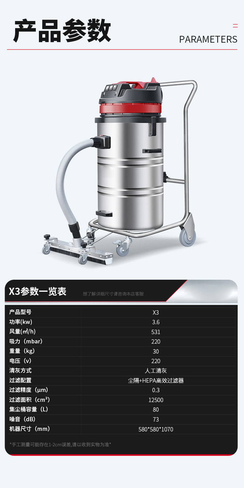 房山坦洁220V单桶不锈钢工业吸尘器X3系列